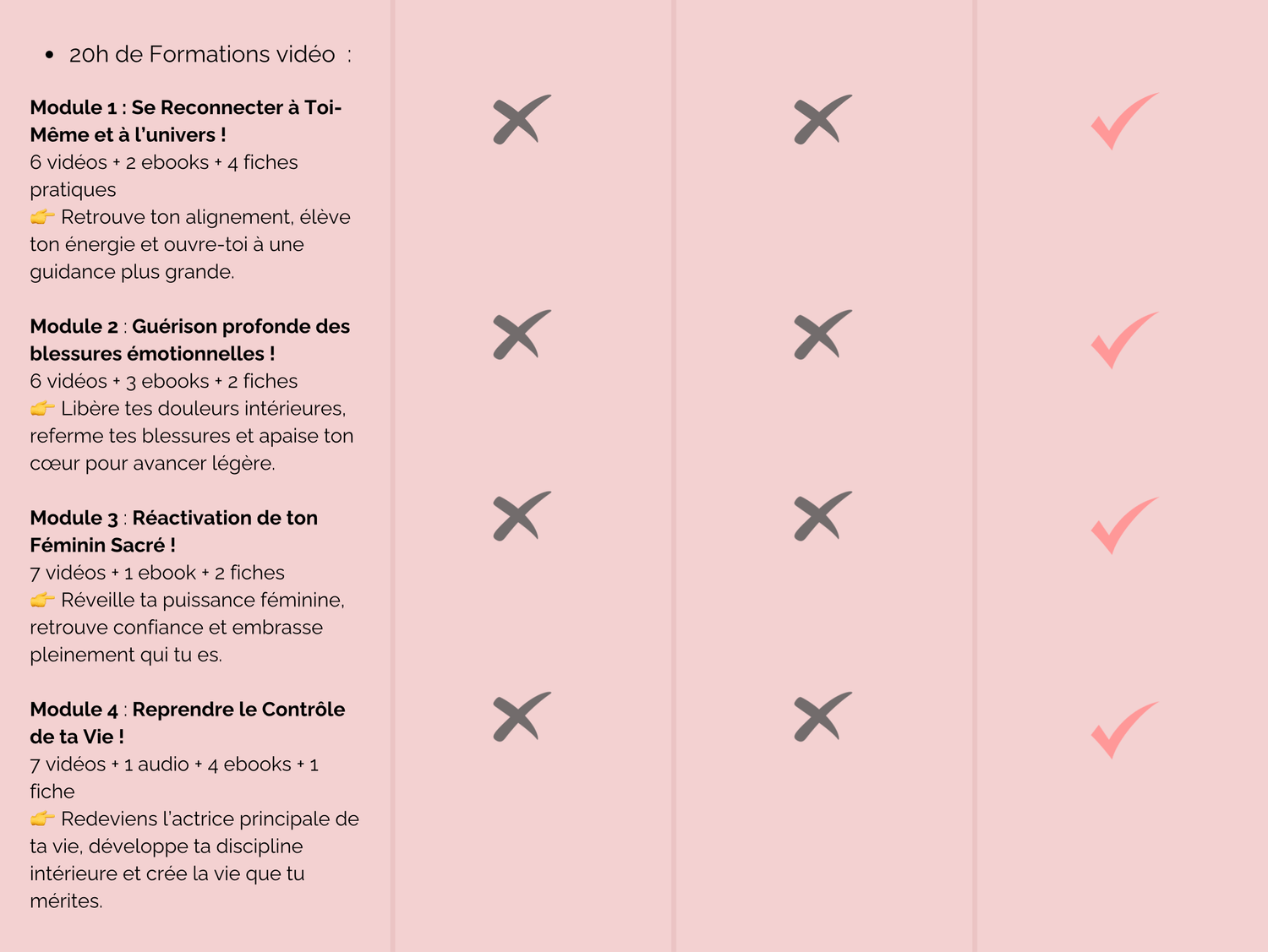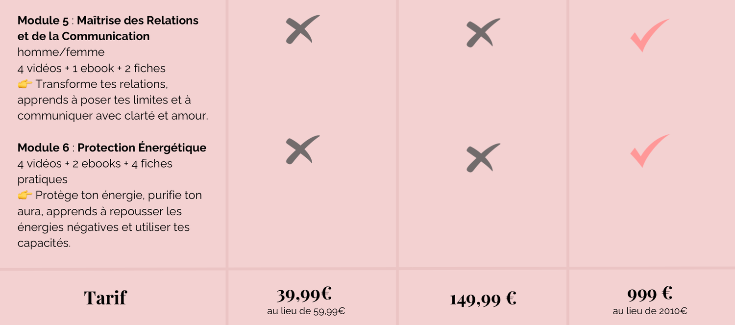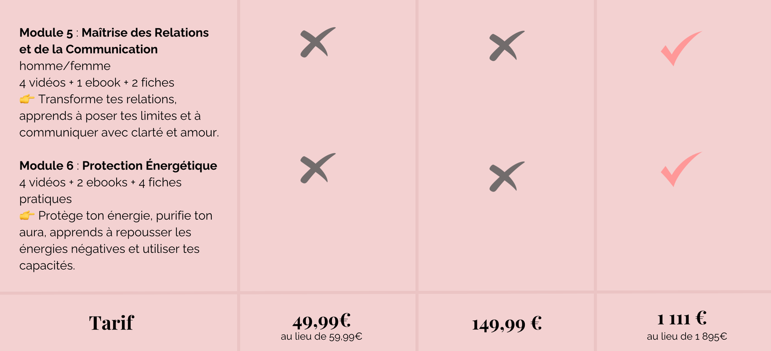 👉 Tu as un accès illimité aux formations vidéo et au e-book. Tu pourras les consulter à ton rythme et autant de fois que tu le souhaites.